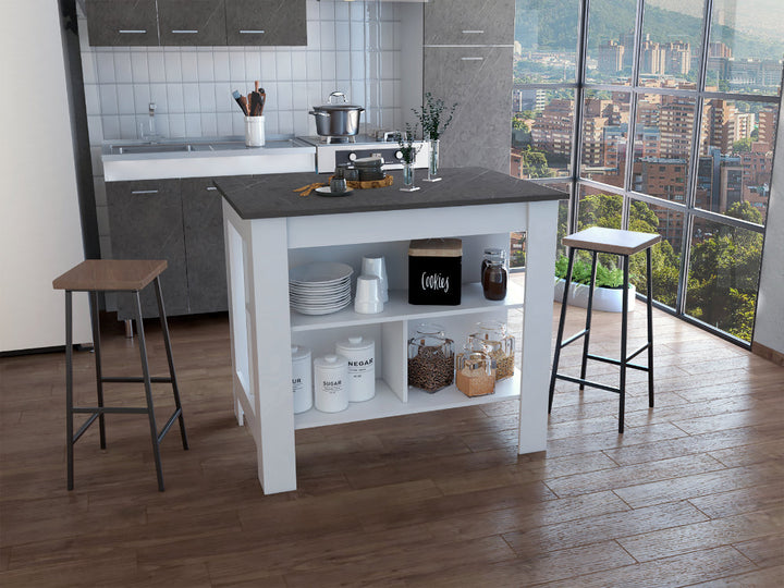 Barra de Cocina Cala, Blanco y Piedra, con Amplia Superfie En La Mesa