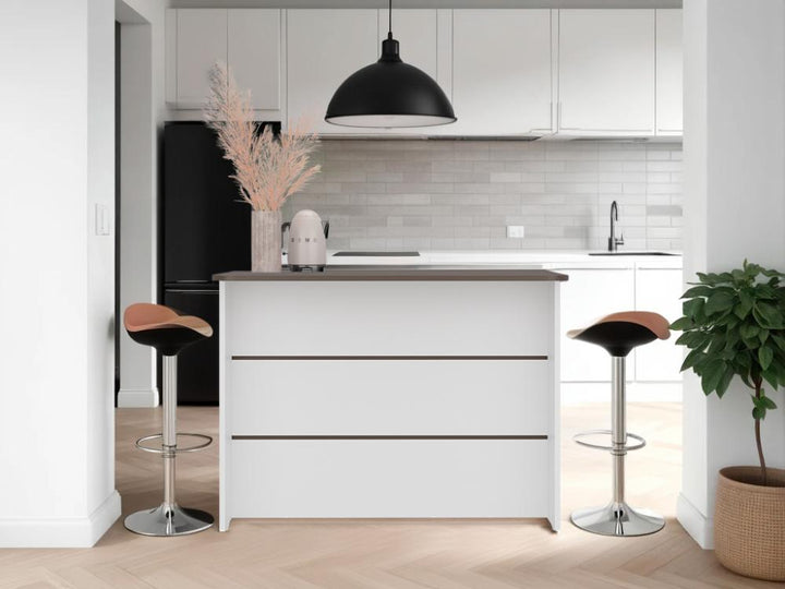 Barra de Cocina Diamante, Blanco y Milan, Con Entrepaños