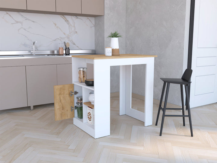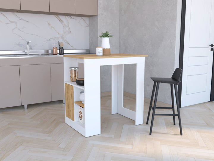 Barra de Cocina Mirlin, Blanco y Macadamia, con diseño moderno de fácil armado