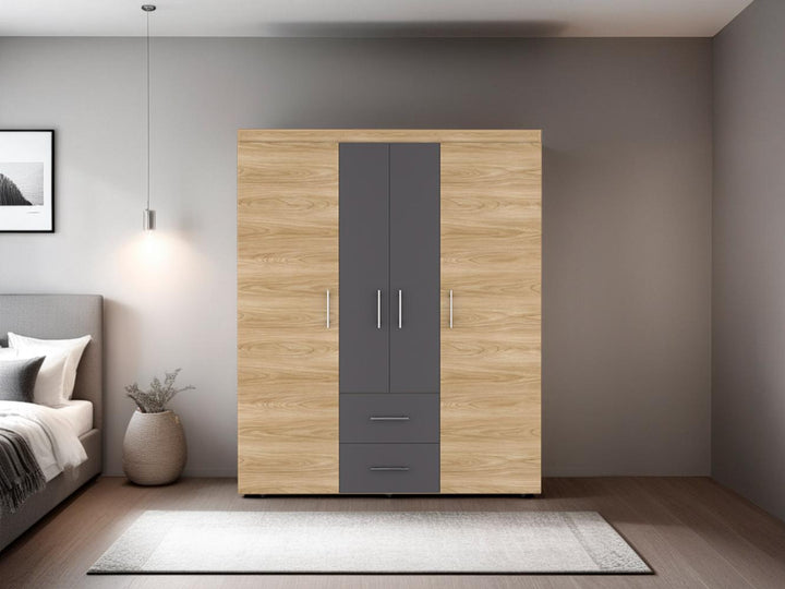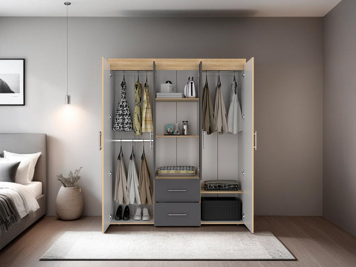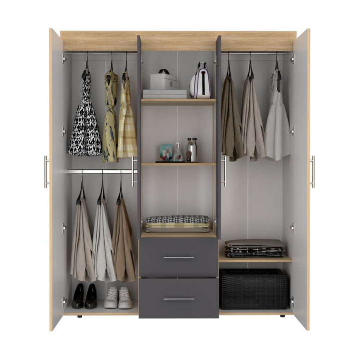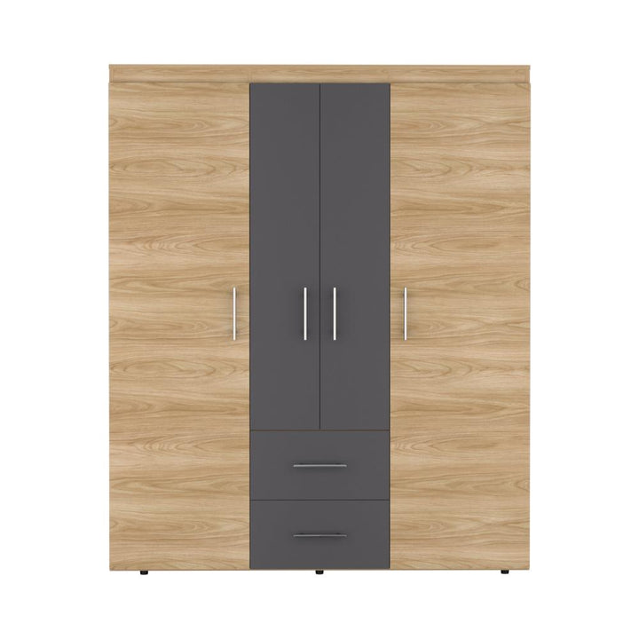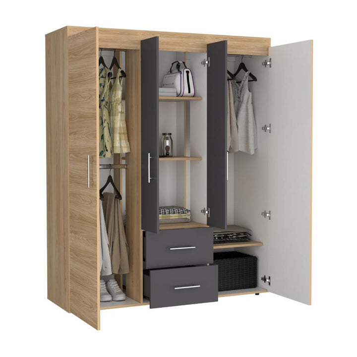 Closet Bariloche Bombay Eco, Fresno Europeo y Blanco Plomo, con Variedad de Entrepaños y Cuatro Puertas Abatibles