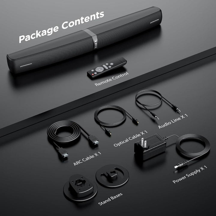 Barra de sonido de 90 W con conexión Bluetooth/ARC/óptica/AUX, aumento de volumen automático, 3 modos de ecualizador personalizables.