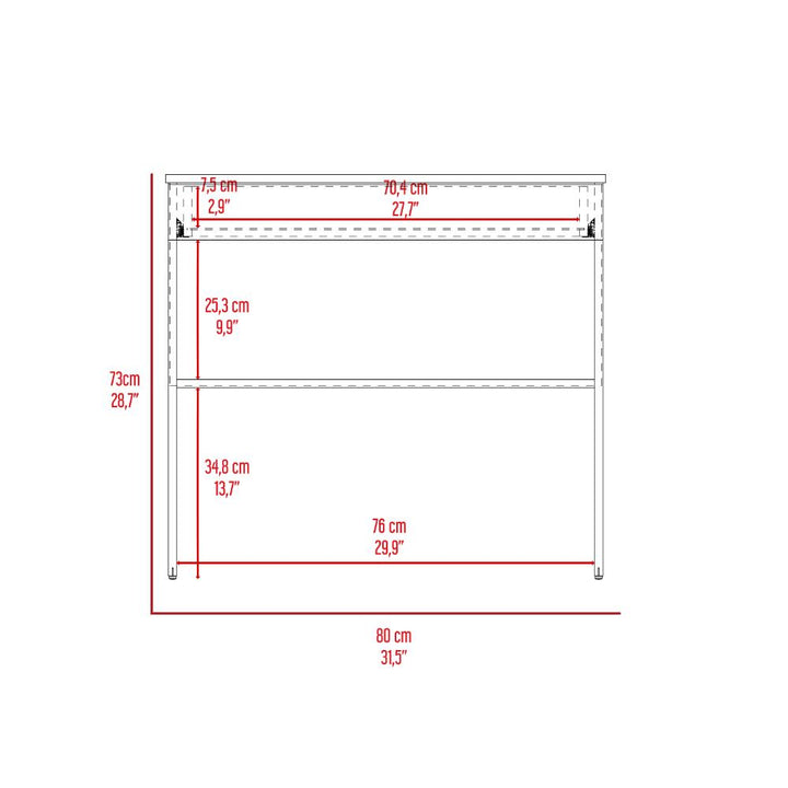 Escritorio con diseño moderno, amplia superficie de trabajo, entrepaño y cajon.