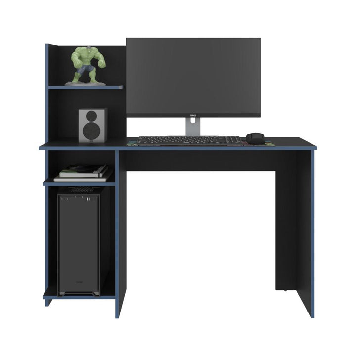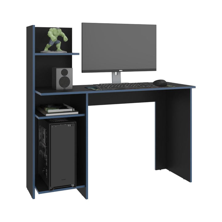Escritorio Gamer Vilna, Wengue Y Azul, Con Cuatro Entrepaños