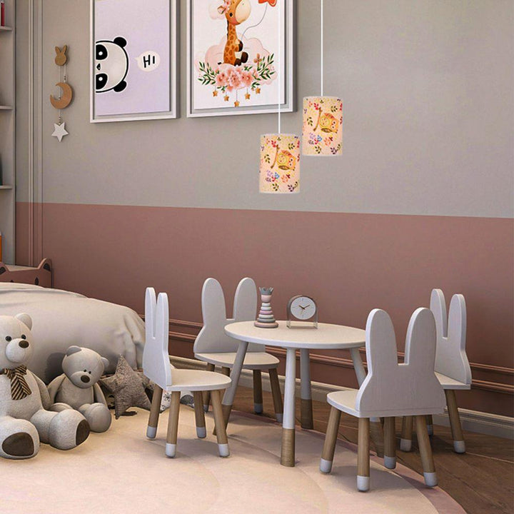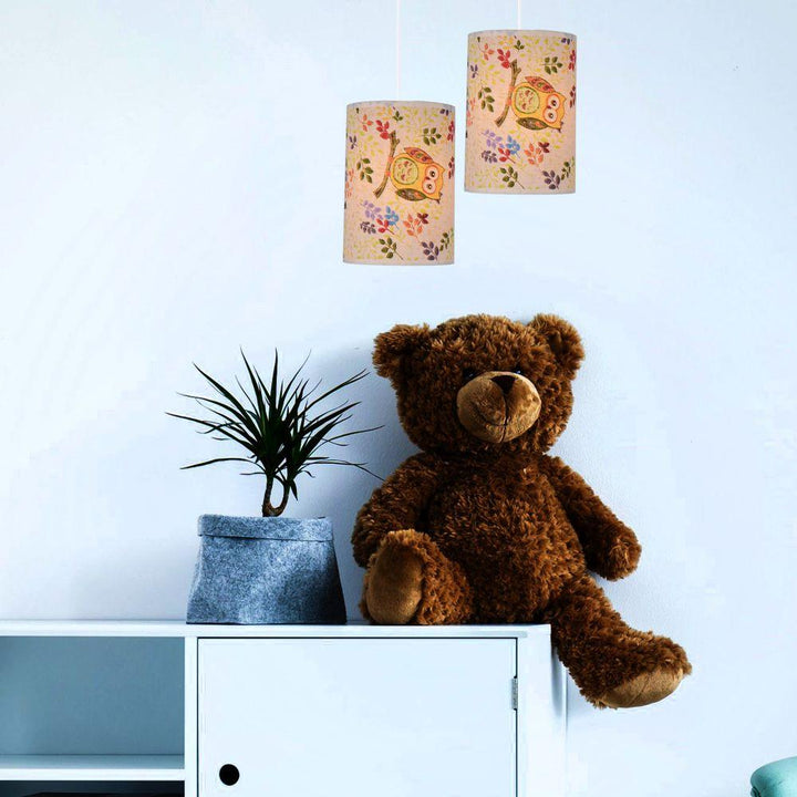 Lámpara, elaborado en Metal, Divertido diseño de lámpara infantil colgante, perfecta para iluminar y decorar las habitaciones de los más pequeños de casa. Aplicación colgante en forma cilíndrica con un hermoso dibujo aniamal en colores, regulable en altura, tela estampada de alta definición y plastificado por dentro en acetato PVC.
