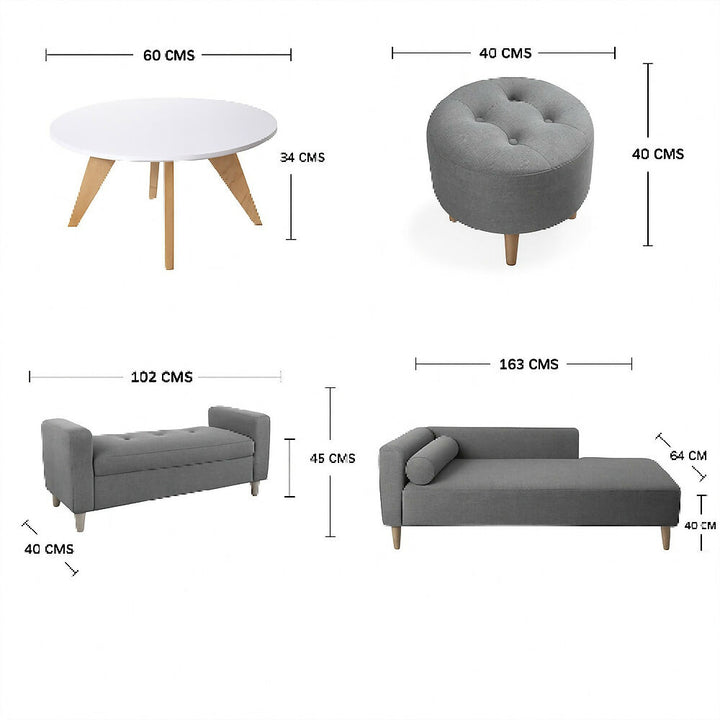 Sala Fresh Sofa + Banqueta Baul + Puff Gris + Mesa De Centro