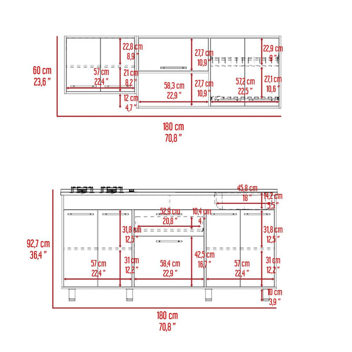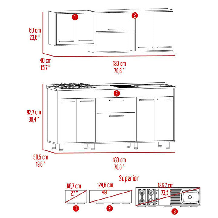Cocina Integral 180 Cm Union Blanco Y Duna Derecho