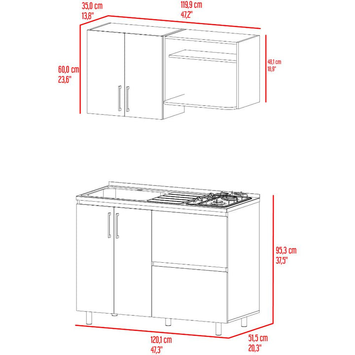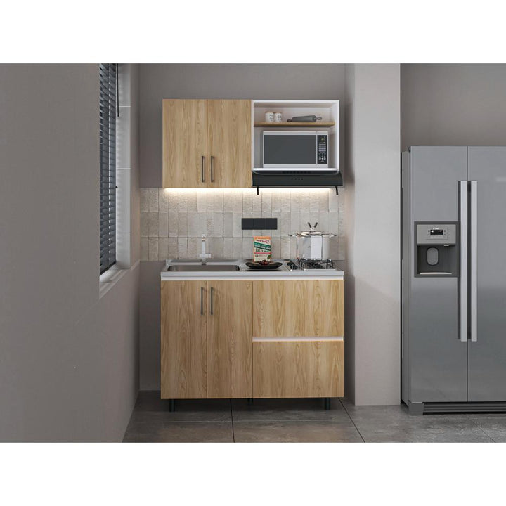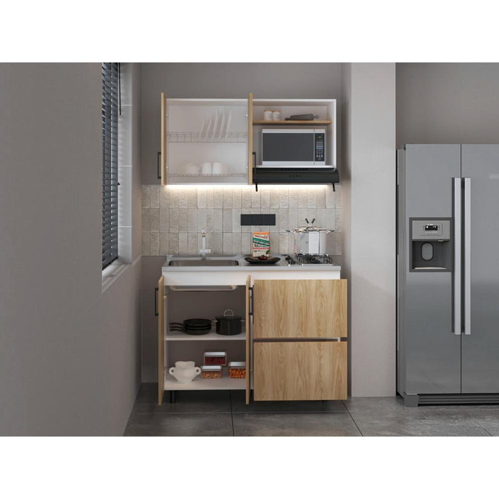 Cocina Integral Corne, Fresno Europeo y Blanco, Incluye Mesón Izquierdo