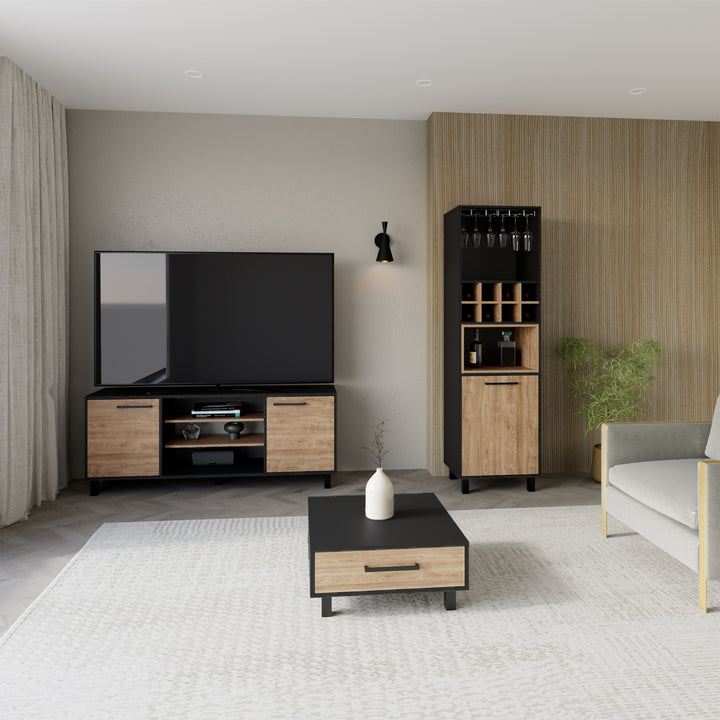 Combo de Sala Kaia Wengue y Miel, Incluye Bar, Mesa de Tv y Mesa de Centro