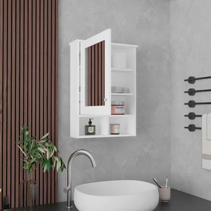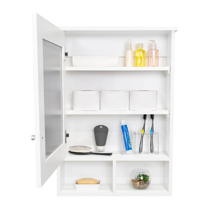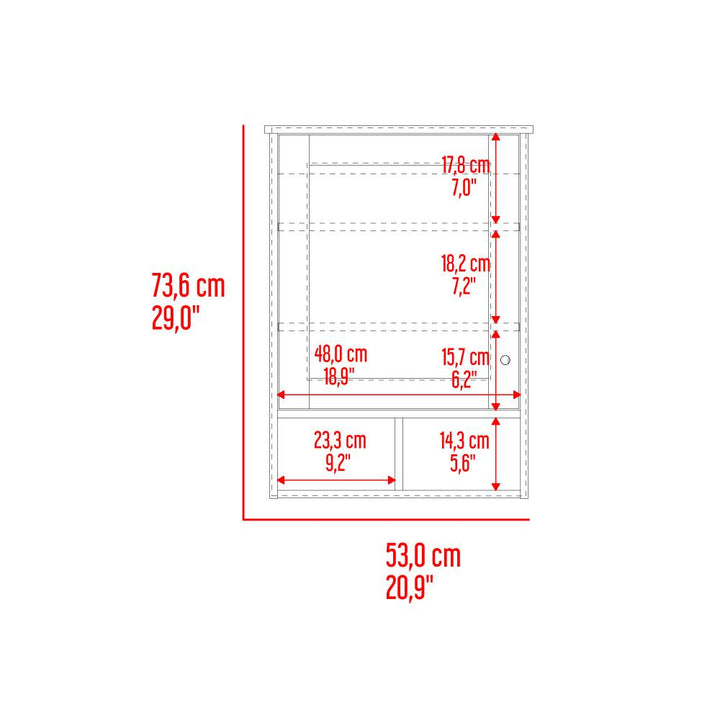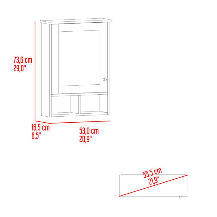 Gabinete de Baño, con puerta espejo y tres entrepaños para ubicar objetos.