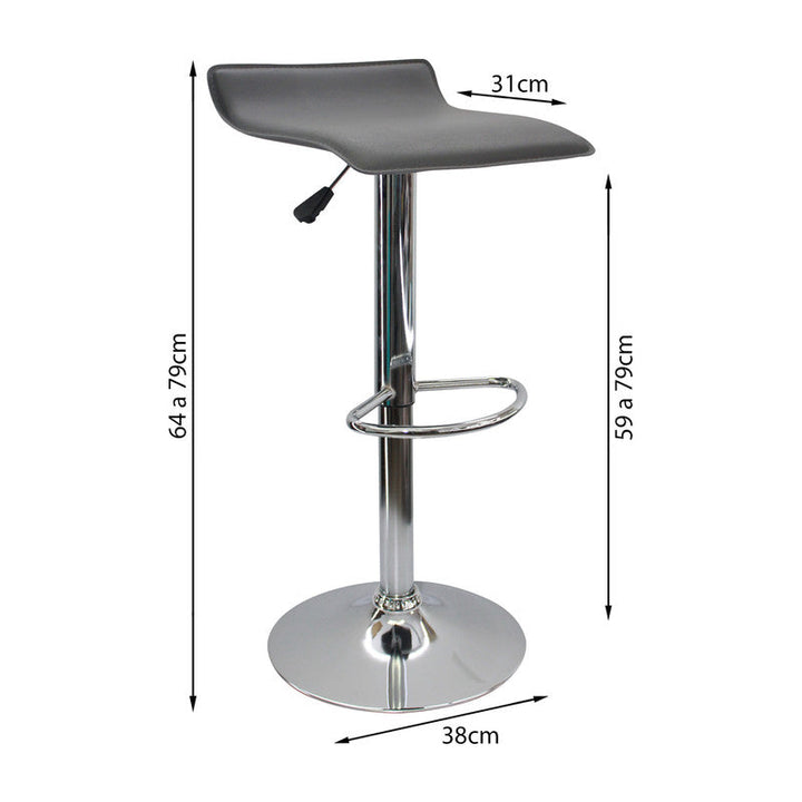 Nuestra Silla Silla Wave Bar, Tiene un toque elegante, moderno y lujoso. Su resistente base de acero cromado y su asiento revestido de eco cuero de primera calidad son garantía de comodidad y durabilidad. Esta silla se adapta a tus necesidades gracias a su regulación de altura y un cómodo soporte para los pies.