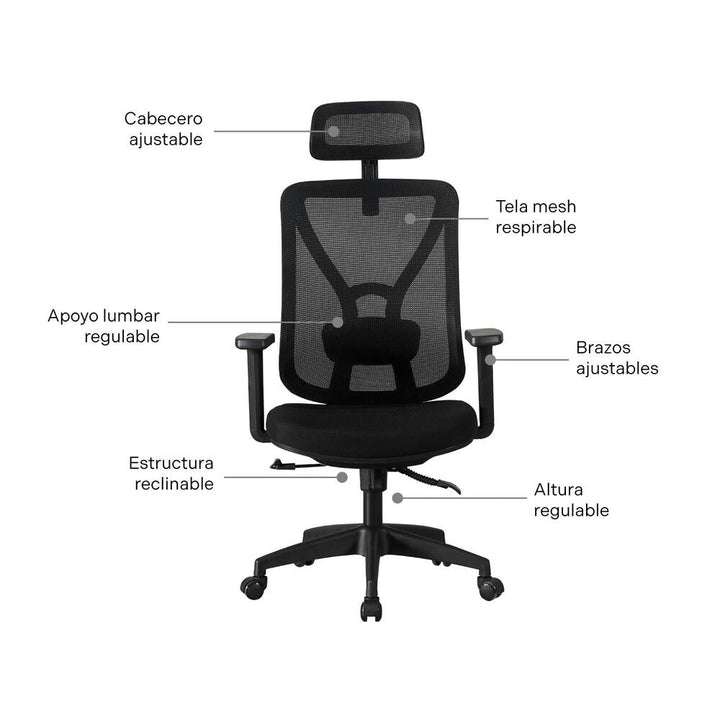 5. Cilindro neumático: Altura ajustable para adaptarla a tu escritorio