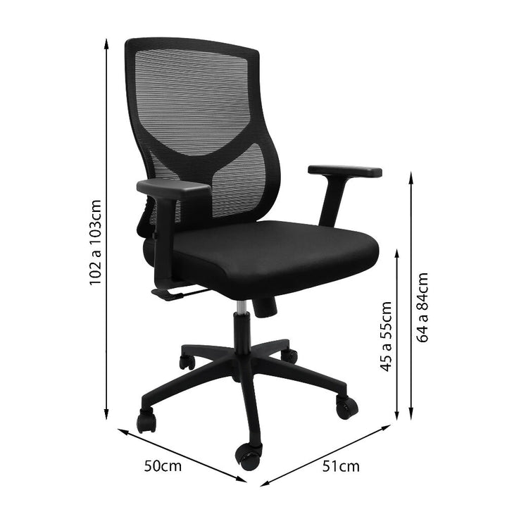 Nuestra silla Toquio combina comodidad y funcionalidad para largas sesiones de uso. Con un tapizado en tela microperforada transpirable (Malla), la silla cuenta con apoya brazos en polipropileno ajustables en altura. Su asiento es acolchado con revestimiento de malla, ofrece regulación de altura con pistón neumático ,ruedas de nailon reforzado que ofrecen durabilidad y suave movilidad . ideal para oficinas operacionales. Soporta hasta 110 kg ,requiere ensamblado con un nivel de dificultad medio.