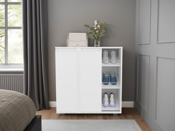 Mueble Auxiliar Zapatero, con 2 puertas abatibes, con gran espacio para organizar o almacenar zapatos
