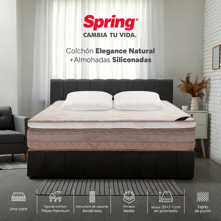 Colchón Spring Elegance Natural Queen 160X190 Cm Gratis Almohadas Siliconadas