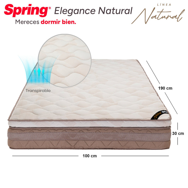 Colchón Spring Elegance Natural Sencillo 100X190 Cm Gratis Almohada Siliconada