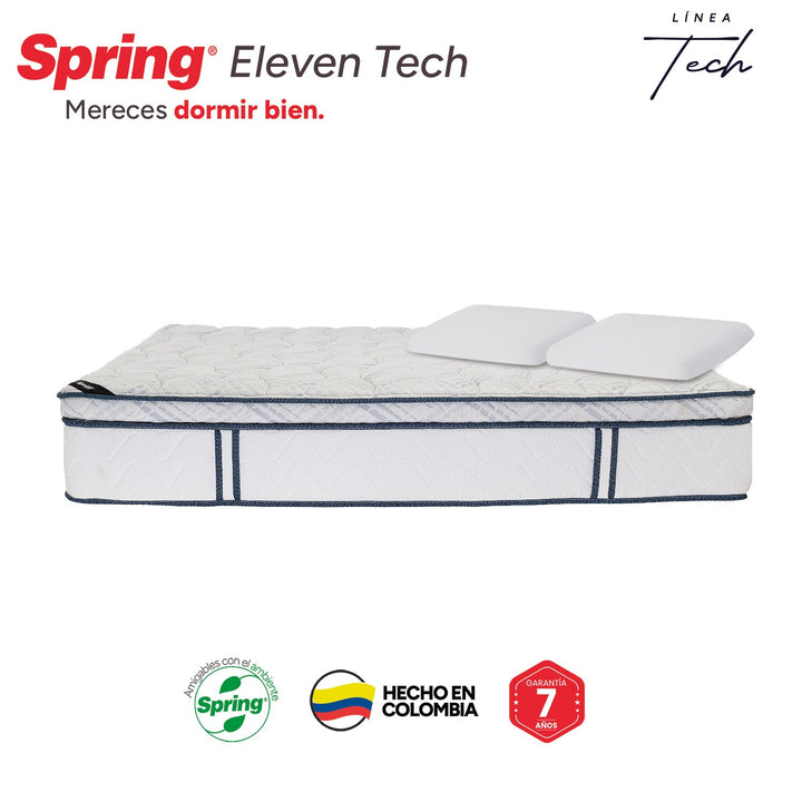 Colchón Spring Eleven Tech Doble 140X190 Cm Gratis Almohadas Ergo