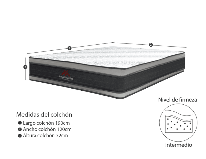 Combo para Habitación, incluye Base Cama Semidoble toda su estructura interna esta elaborada en Pino Canadiense inmunizado, tendido de tablas y patas en acero inoxidable Colchón tela transpirable, proporciona suavidad y frescura manteniendo la temperatura adecuada del cuerpo permitiendo un descanso reparador Protector Acolchado, Elaborado en tela microfibra 100% poliéster, resistente al rasgado 4 esquinas elásticas.