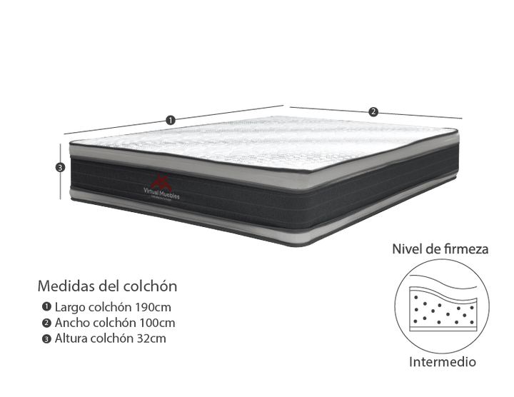 Combo para Habitación, incluye colchón tela transpirable, proporciona suavidad y frescura manteniendo la temperatura adecuada del cuerpo permitiendo un descanso reparador, fibra de celdas abiertas de alta densidad que proporciona la firmeza ideal para el cuidado de la de la columna vertebral y Almohada fabricadas en una espuma termosensible (Viscoelástica), que se adapta a la huella del cuerpo reduciendo los puntos de contacto con la superficie de la almohada y distribuyendo la presión equitativamente.