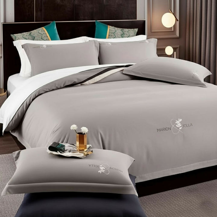 Duvet Tacto Suave Unicolor Gris Queen + Sábana Plana
