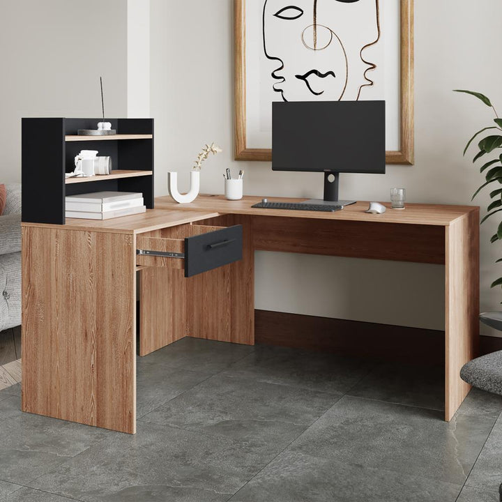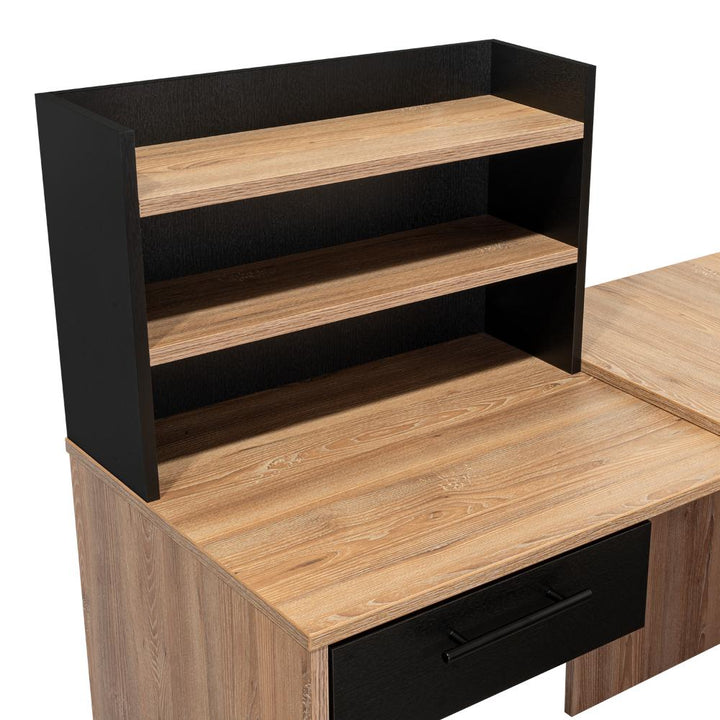 Elaborado en Madera aglomerada MDP, recubierta con láminas melamínicas de excelente calidad, en color Miel y Wengue.