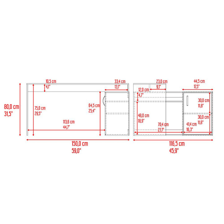 Elaborado en Madera aglomerada MDP, recubierta con láminas melamínicas de excelente calidad, en color Wengue y Rojo.