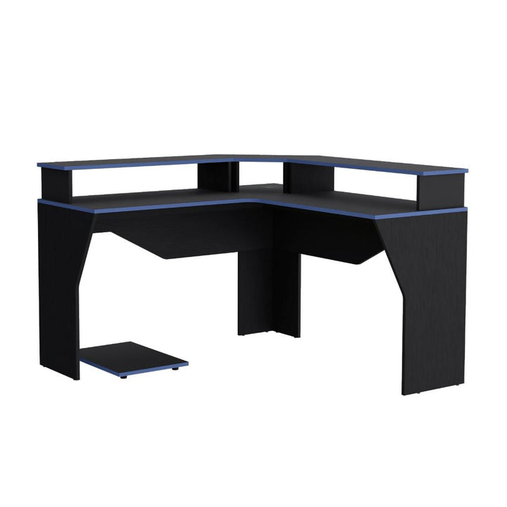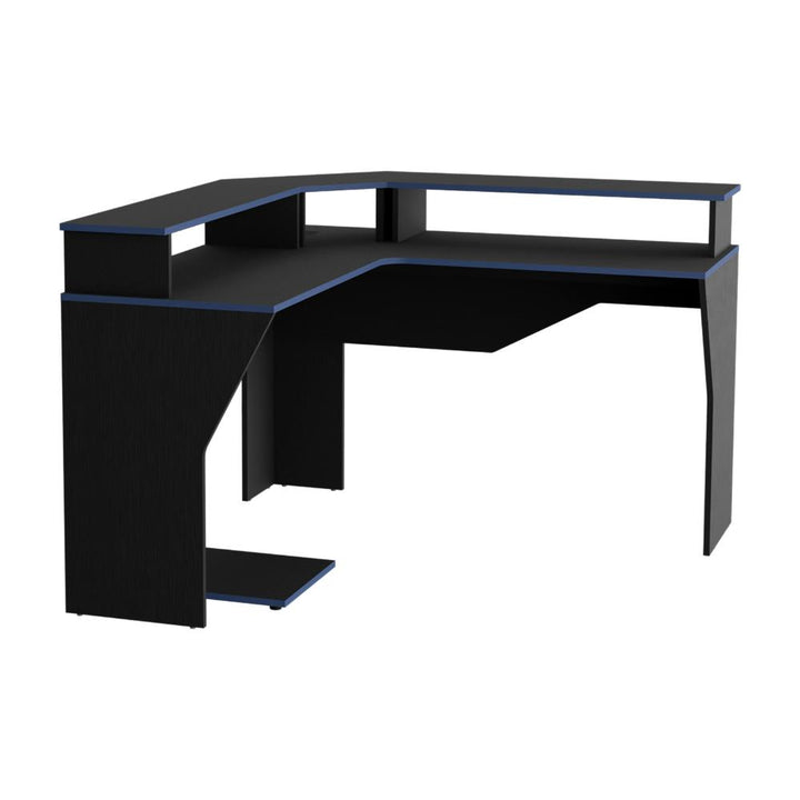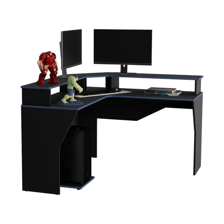 Escritorio Gamer Invictor Wengue Y Azul Con Espacio Adicional Para Pantallas