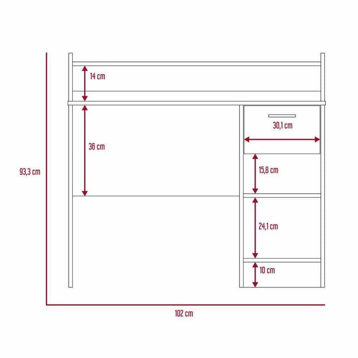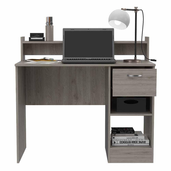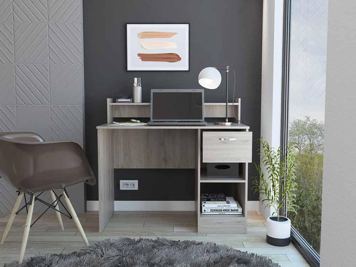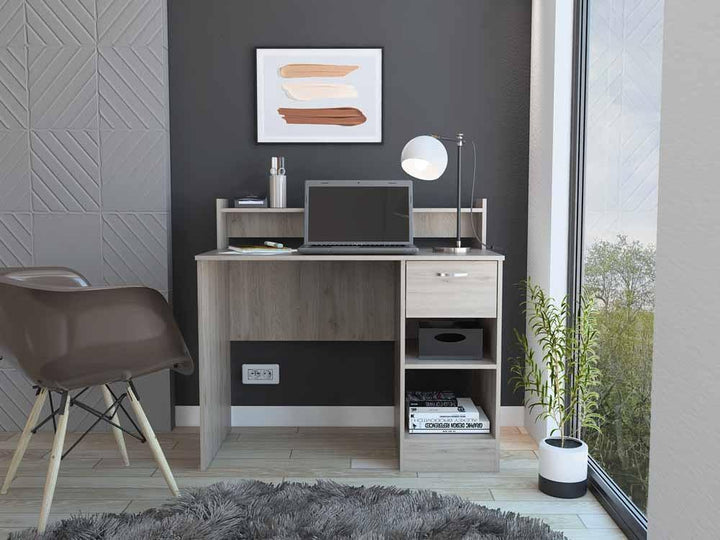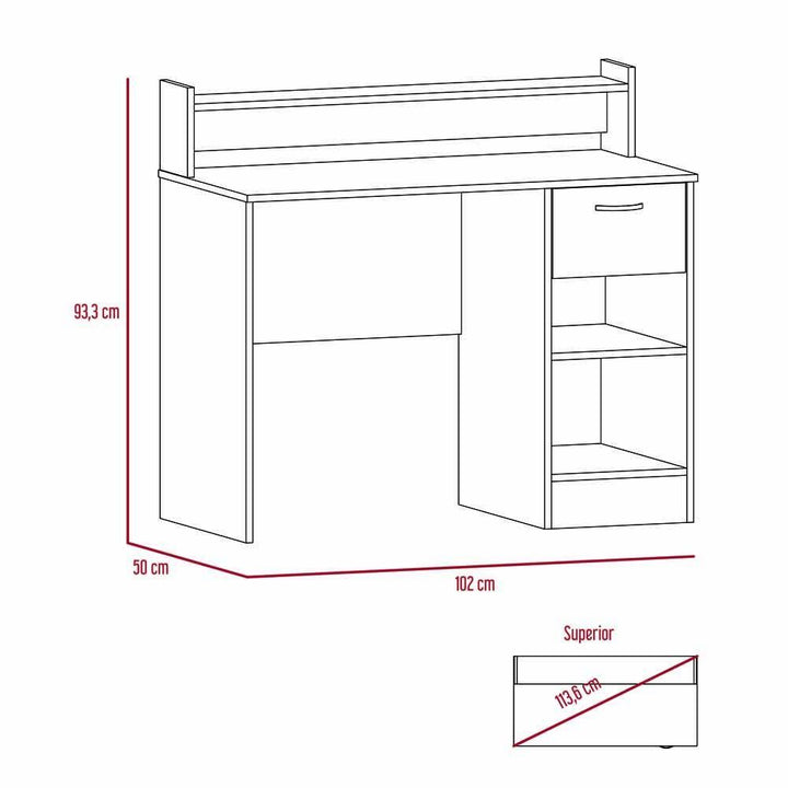 Escritorio, con amplia superficie de trabajo, 2 entrepaños para almacenamiento, 1 cajón.