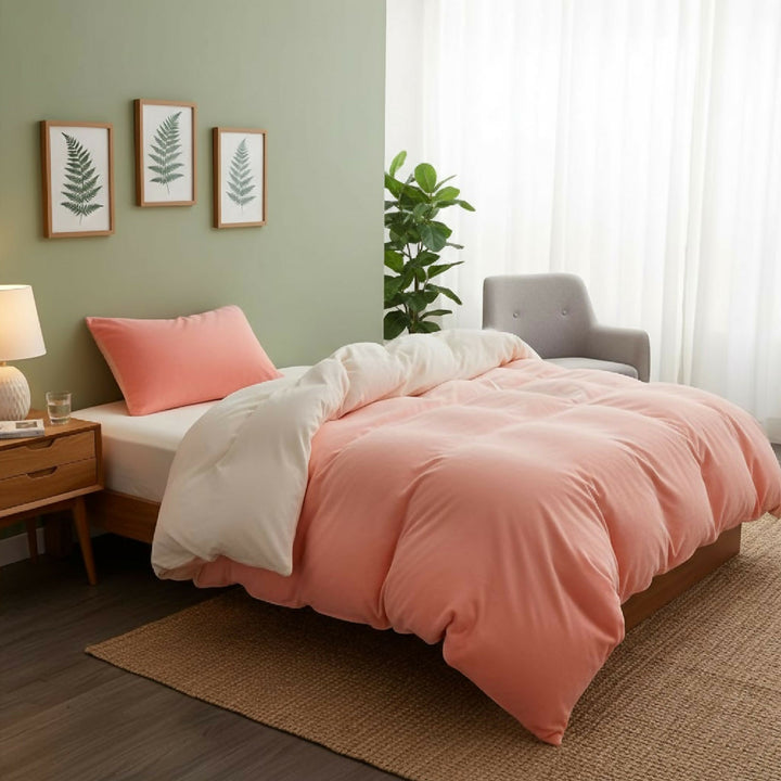 Funda Duvet Digital De Franela Con Estampado Degrade Rosa Doble + Sábana Plana