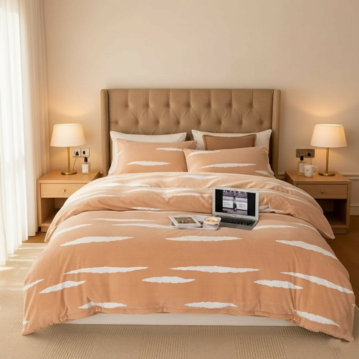 Funda Duvet Digital De Franela Con Estampado Orange Queen + Sábana Plana