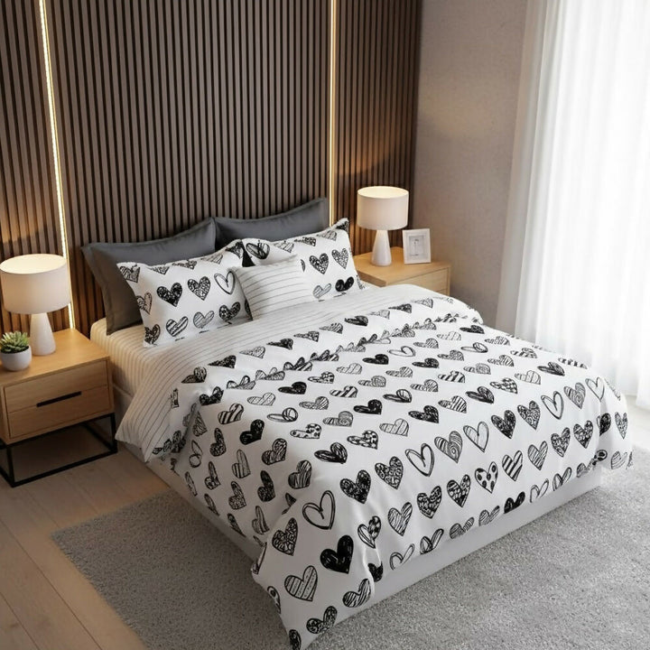 Funda Duvet Estampado Black Heart Doble + Sábana Plana