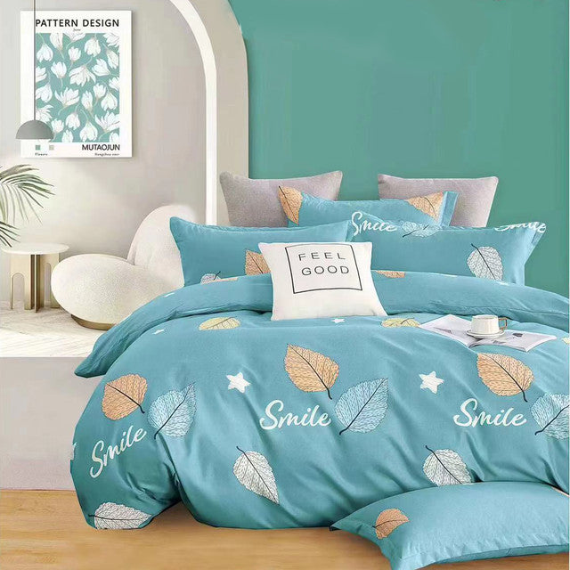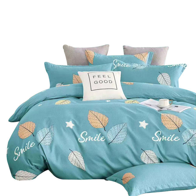 Funda Duvet Estampado Hojas En Azul Doble + Sábana Plana