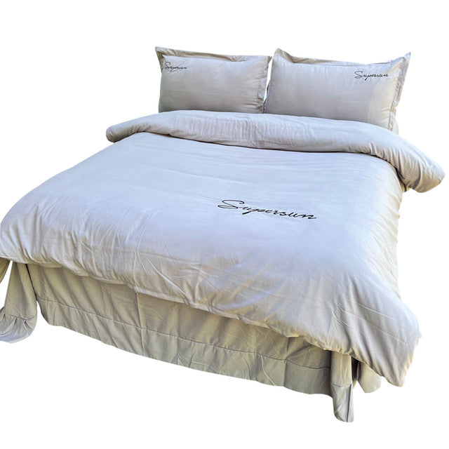 Funda Duvet Sampson Bordado Gris Claro Queen + Sábana Plana