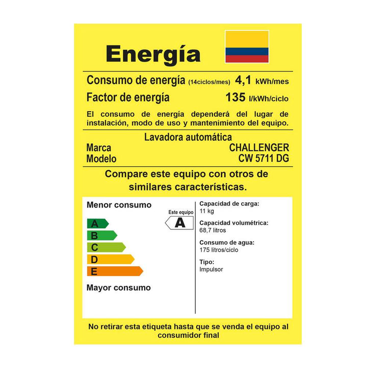 Lavadora Automática Cw 5711 Dg 11 Kg - De 24 Lb Challenger, Color Gris
