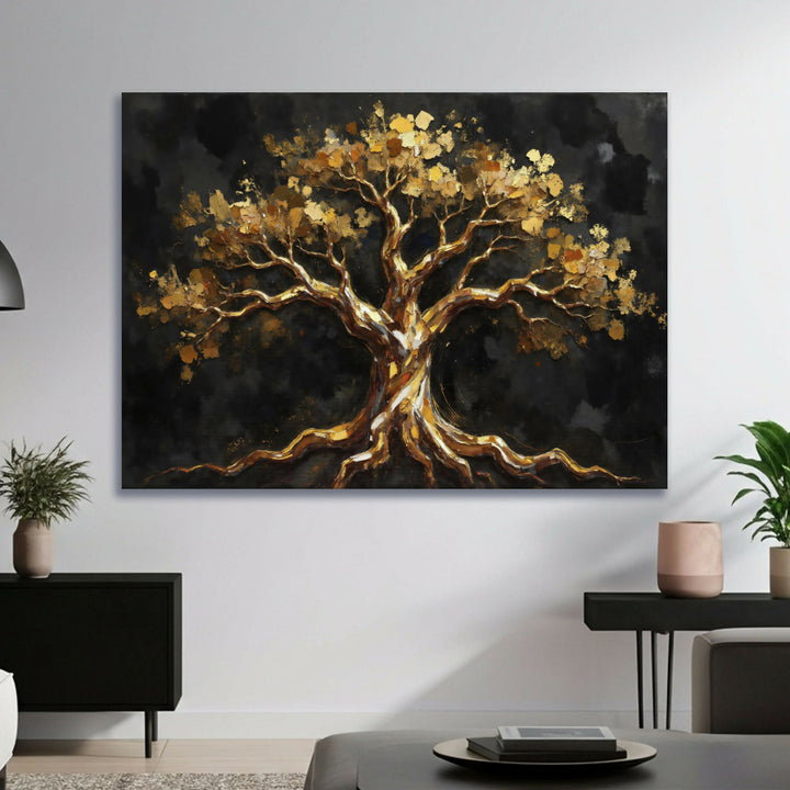 Lienzo Cuadro Árbol de la Vida Dorado 110x80cm