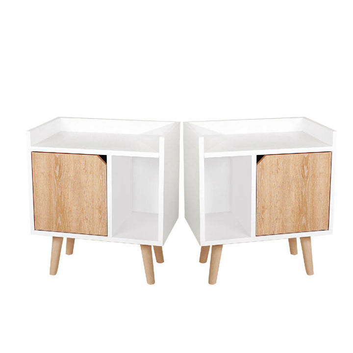 Mesa de noche Dreams (50X45X30) Blanca con puerta Vienes, en melamina de 15mm con proteccion antimicrobiana al 99,9% pata en madera natural