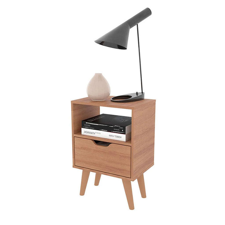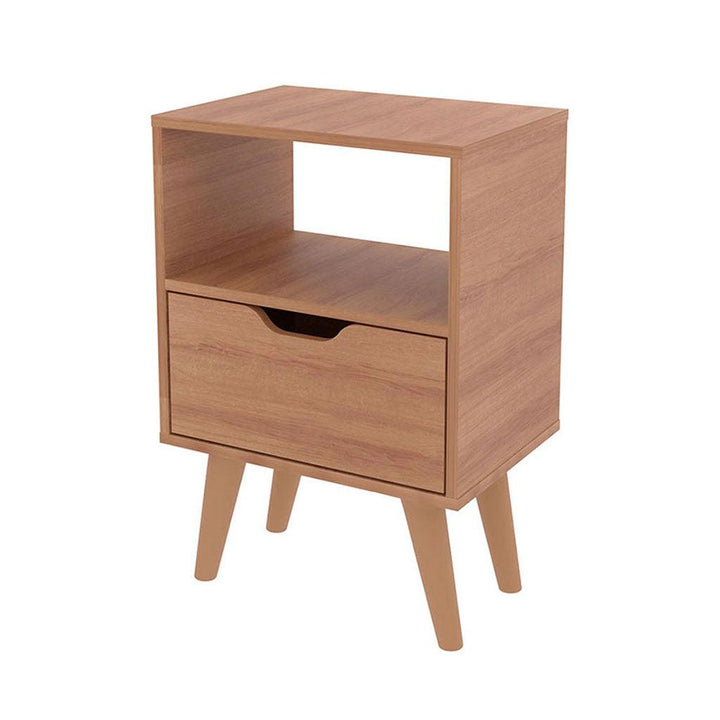 La Mesa de noche Essen es de diseño minimalista, limpio y sencillo gracias a los cajones y entrepaños que mantendrán la habitación ordenada.
