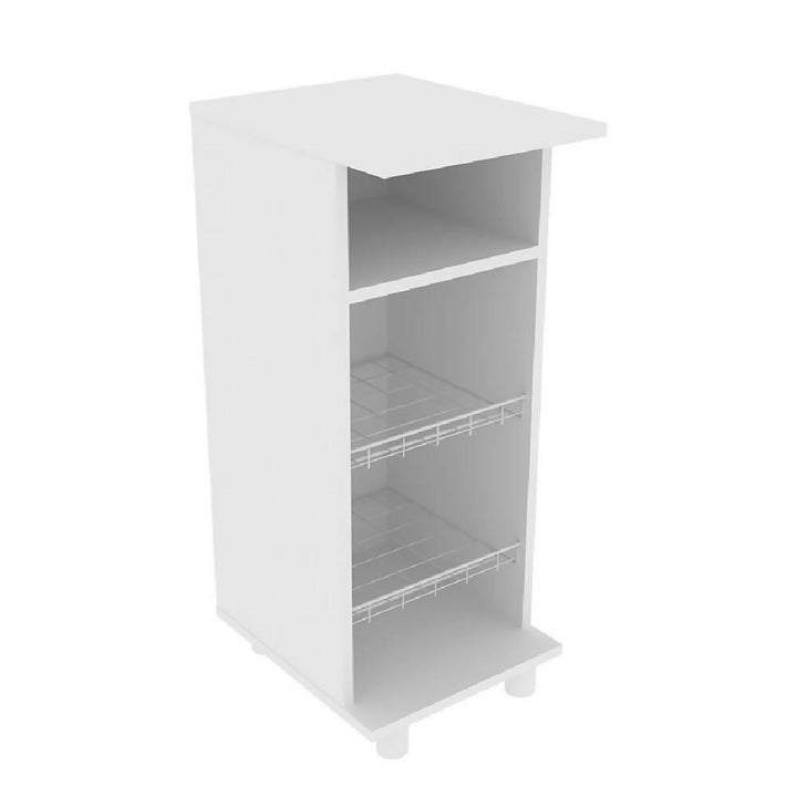 Fabricado en MDP de 15 mm con acabado en BP de alta resistencia, garantiza mayor durabilidad y facilidad de limpieza. Sus repisas abiertas y canastas metálicas, es idal para el almacenamiento de frutas y cualquier otro tipo de elementos, perfecto para optimizar cocinas pequeñas o complementar zonas auxiliares.