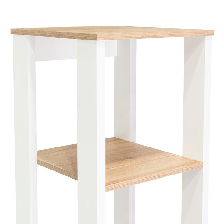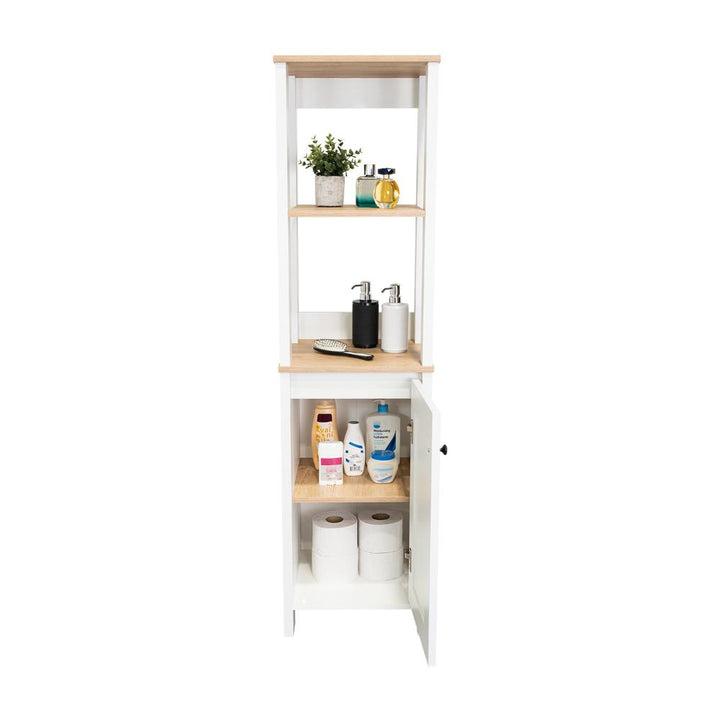 Elaborado en Madera aglomerada MDP, recubierta con láminas melamínicas de excelente calidad, en color Blanco Vainilla y Café Claro.