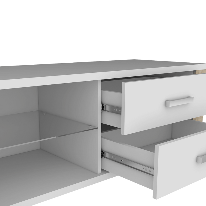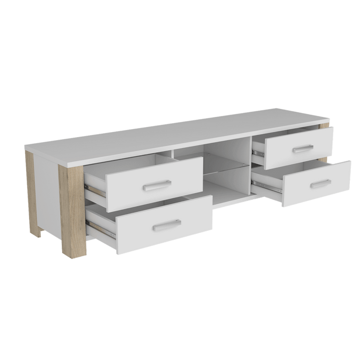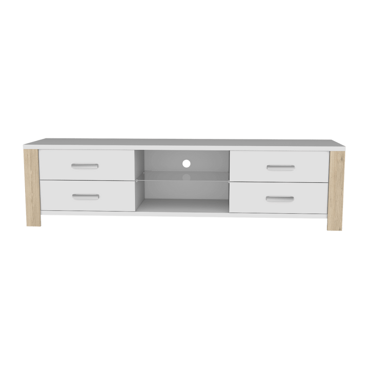 Mesa para TV de 55", con 2 entrepaños y 4 cajones.