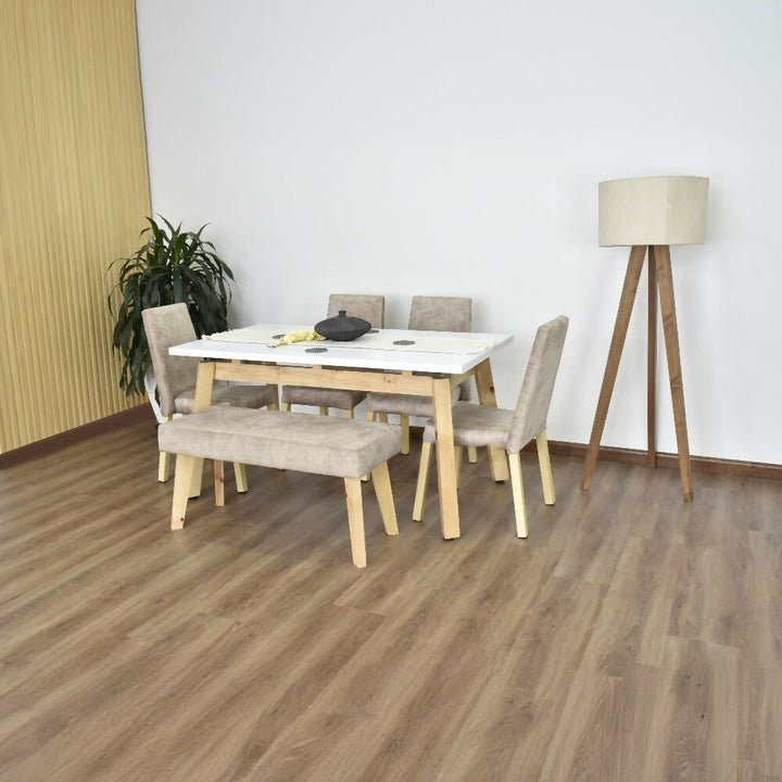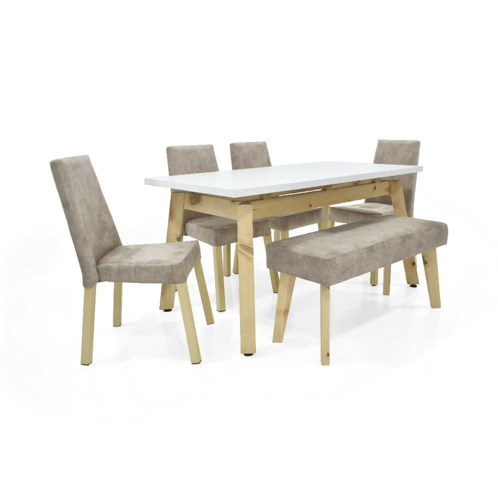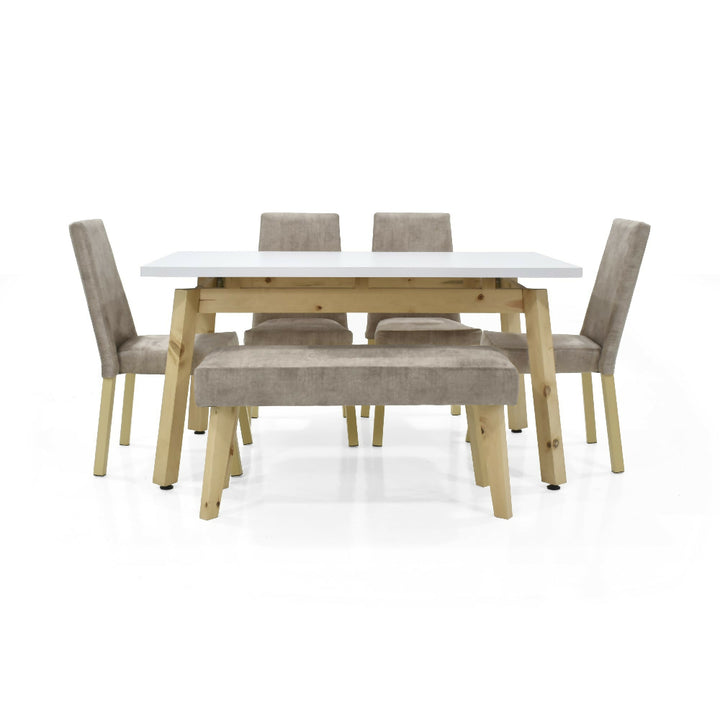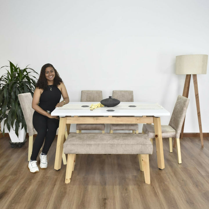 Set Comedor 6 Puestos Tyrone Sillas y Butaco Viena 150x80x76 Beige