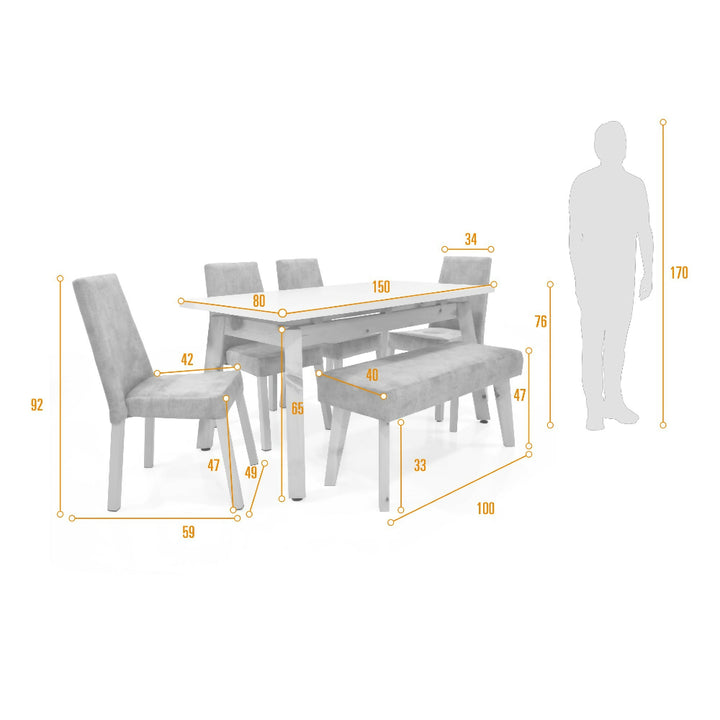 COMEDOR TYRONE 6 PUESTOS + SILLA Y BUTACO VIENA TELA PET FRIENDLY