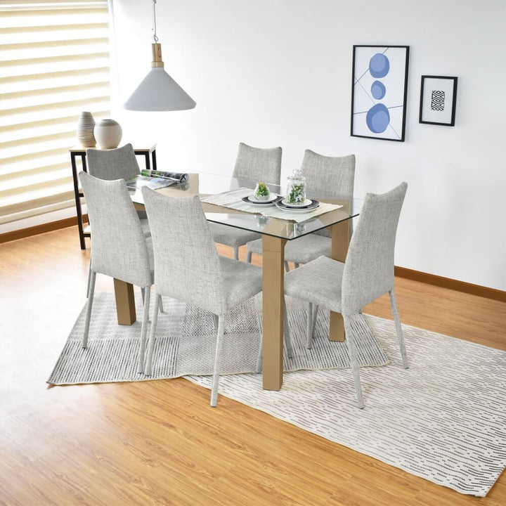 Set de Comedor Beirut 6 Puestos Cenizo y 6 Sillas Palermo plata