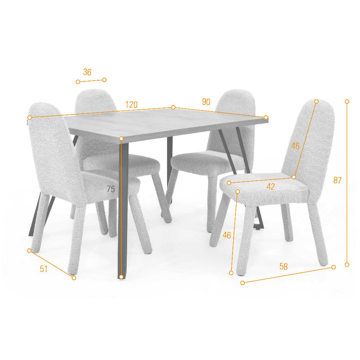 Set de Comedor Forest con 4 Sillas Mollen Tela Plata