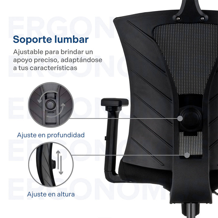4. Brazos: Ajustables en altura en polipropileno color negro.