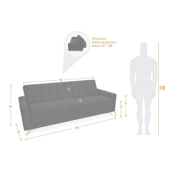 ✅ Uso funcional: sofá cama de 3 puestos, cama sencilla.