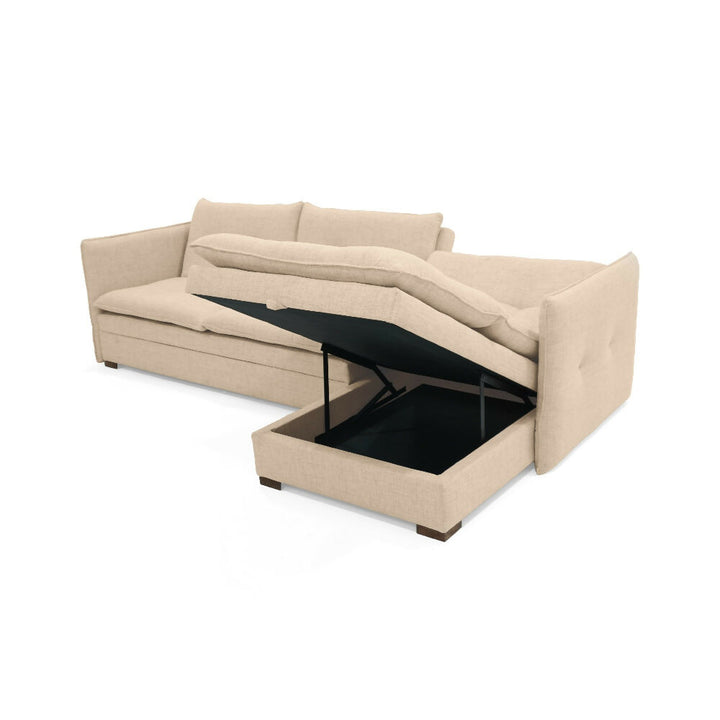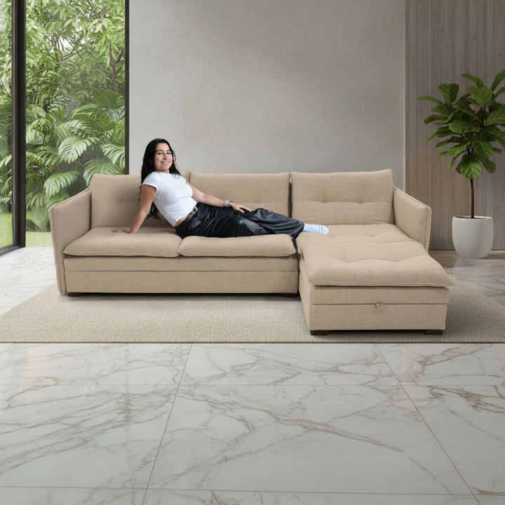 Sofa Cama en L Napoles 269x146x80 Con Baul Izquierdo Beige