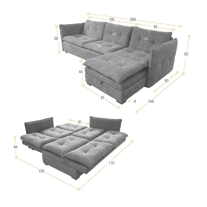 ✅Dimensiones modo cama: 193cm ancho x 170cm profundo x 44cm alto.
